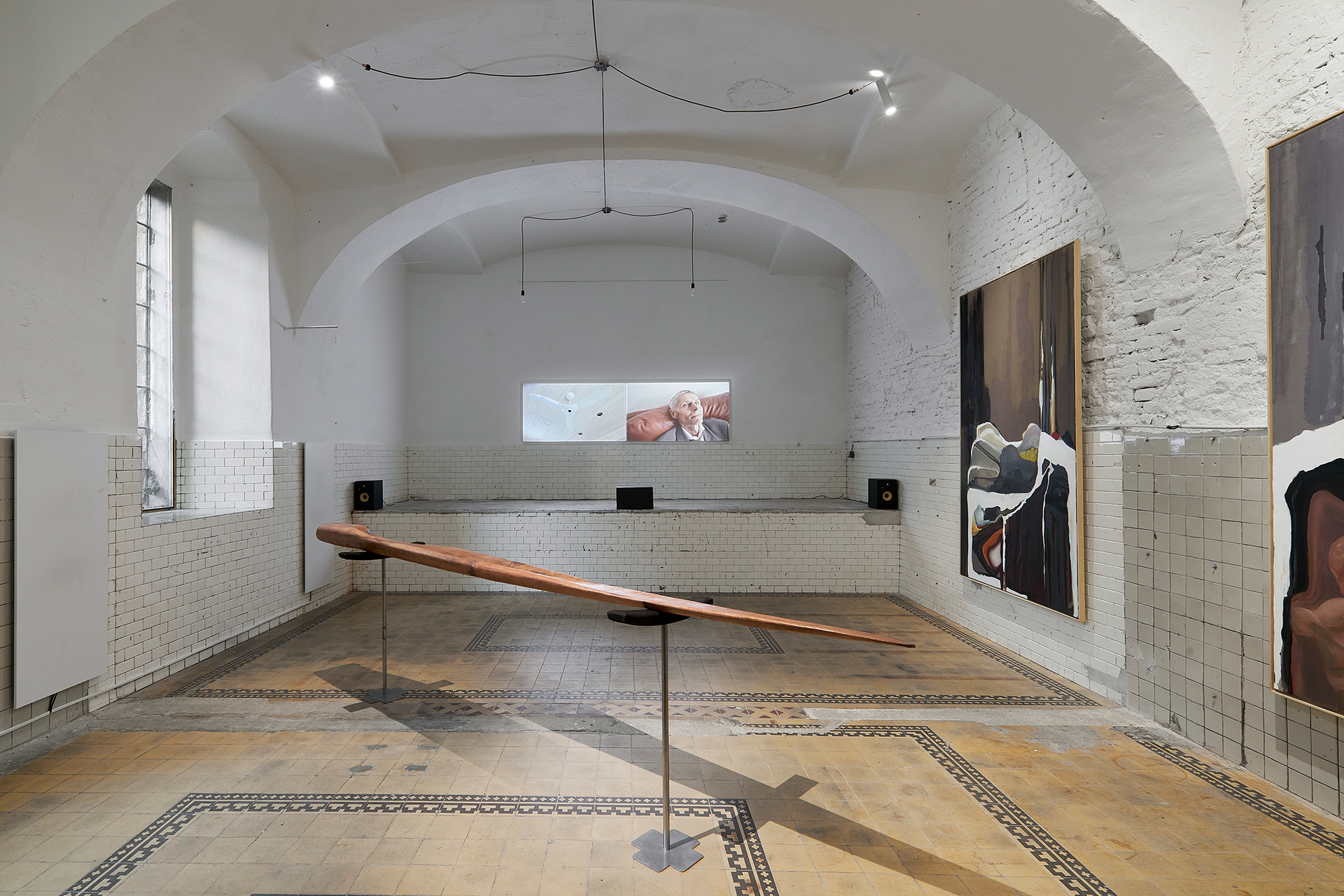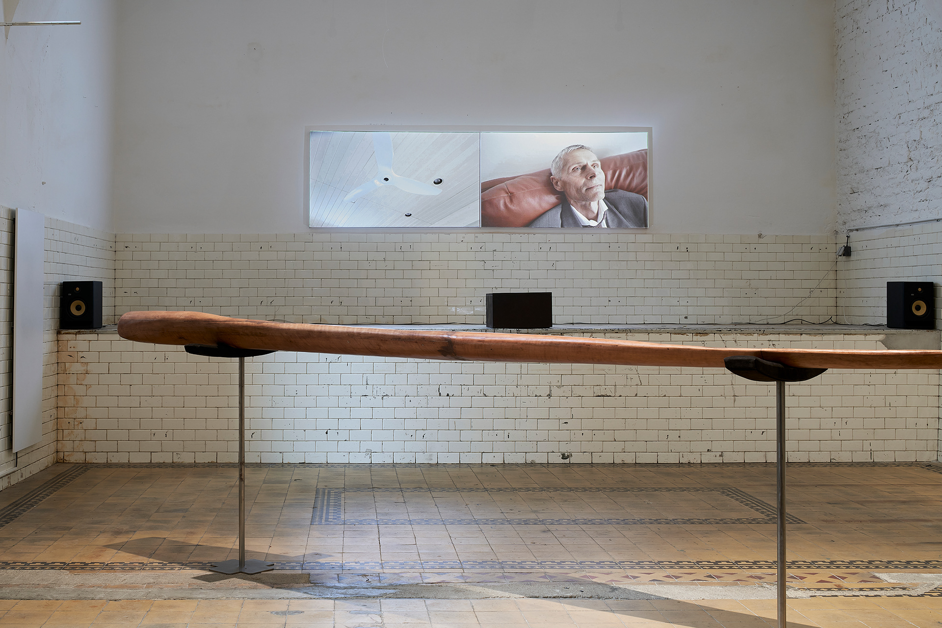 Under the Weather is a multimedia exhibition by Tereza Kalousová and Šimon Chlouba that investigates the notion of “dead time” - a term from computing describing a state when a system is running but performing no productive ac- tion (waiting, blocked, inactive). The artists appropriate this technical concept as a metaphor for a human condition on the threshold of exhaustion, when the body slips into a state of paralyzed stillness. This state is not seen as failure, but as a new epistemic in-between: it produces neither results nor hope, yet opens the possibility for another mode of attention - a form of sensitivity that becomes a critical tool for reading reality. The work reveals a narrow window beyond the logic of performance and the rhythms of technology, where the boundary between what is alive and what is dead emerges. The works of both artists converge at the moment when surrounding time becomes static. Air thickens, and fatigue transforms into the very ground for perceiving the world and its systems. Everyday repetition assumes the force of hypnosis - eyes grow heavy, closing. A rotating ceiling fan seems to carve through suspended time. The duality of future and past quietly dissolves, and visions arise already archived.